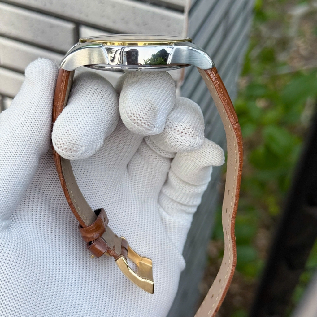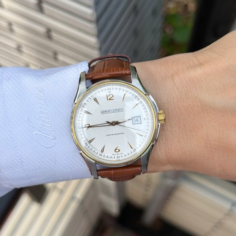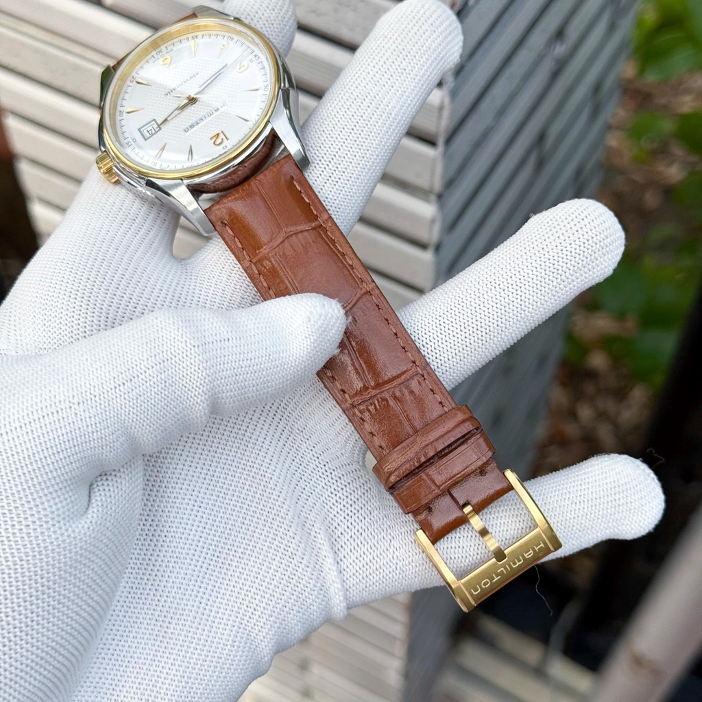 Hamilton H32525155 sở hữu mặt số trắng bạc thanh lịch, kim và cọc số vàng tạo điểm nhấn sang trọng. Vỏ thép không gỉ phối viền vàng tinh tế, kính sapphire chống xước cùng dây da nâu mềm mại tôn vẻ cổ điển. Khả năng chống nước 50 mét, phù hợp phong cách doanh nhân, công sở hoặc các dịp trang trọng, mang đến vẻ lịch thiệp và đẳng cấp tinh tế.