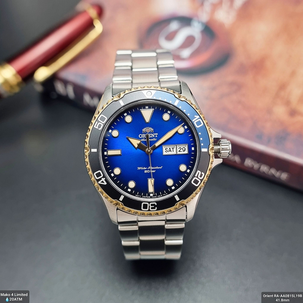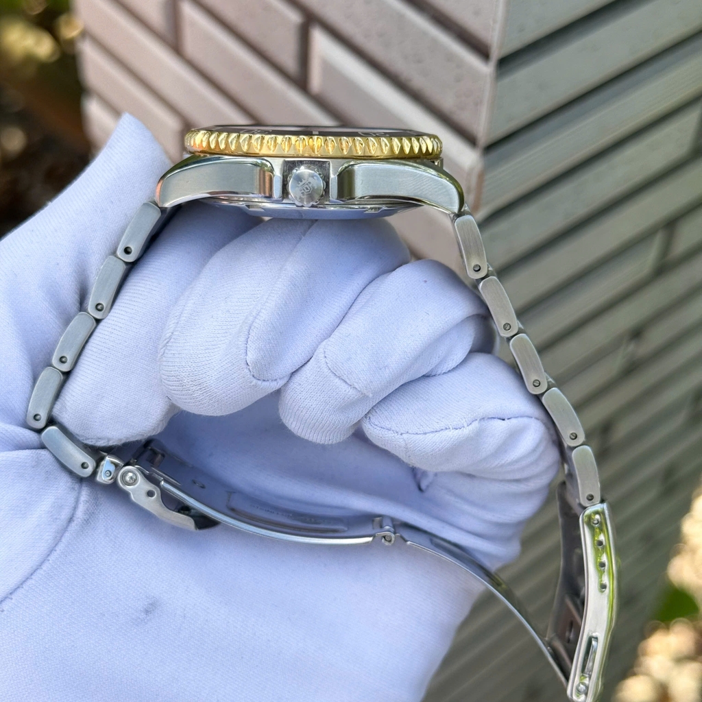 Mặt số xanh gradient kết hợp kim và cọc số phủ dạ quang vintage, tạo vẻ mạnh mẽ nhưng vẫn tinh tế. Kính sapphire chống trầy, vỏ thép không gỉ bạc, bezel điểm nhấn viền vàng, núm vặn screw-down chắc chắn. Phù hợp với phong cách sporty, casual, smart-casual, dễ dàng phối cùng jeans, áo polo hoặc sơ mi nhẹ để vừa năng động vừa lịch lãm.