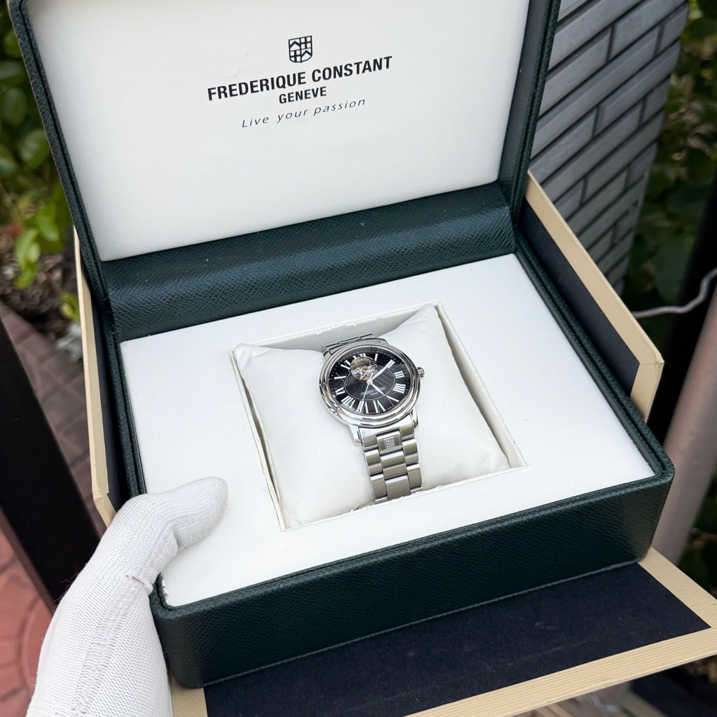 Mẫu đồng hồ sử dụng bộ máy cơ tự động FC-310 với 26 chân kính, tần số dao động 28.800 nhịp/giờ, khả năng trữ cót khoảng 40 giờ. Máy hỗ trợ lên cót tay (hand winding) và dừng kim giây (hacking stop) khi chỉnh giờ. Bộ máy hoàn thiện tinh xảo với màu đen huyền bí, thể hiện trình độ chế tác chuẩn mực của Frederique Constant.