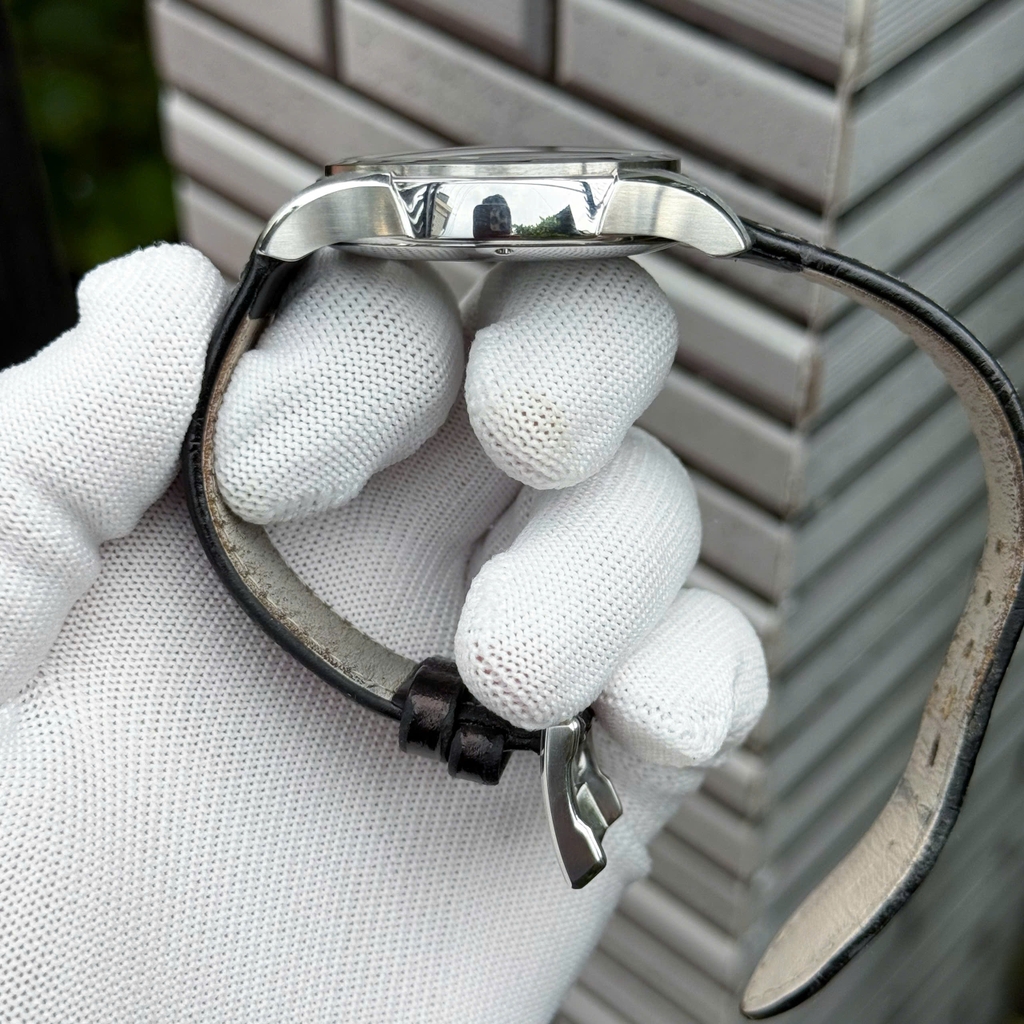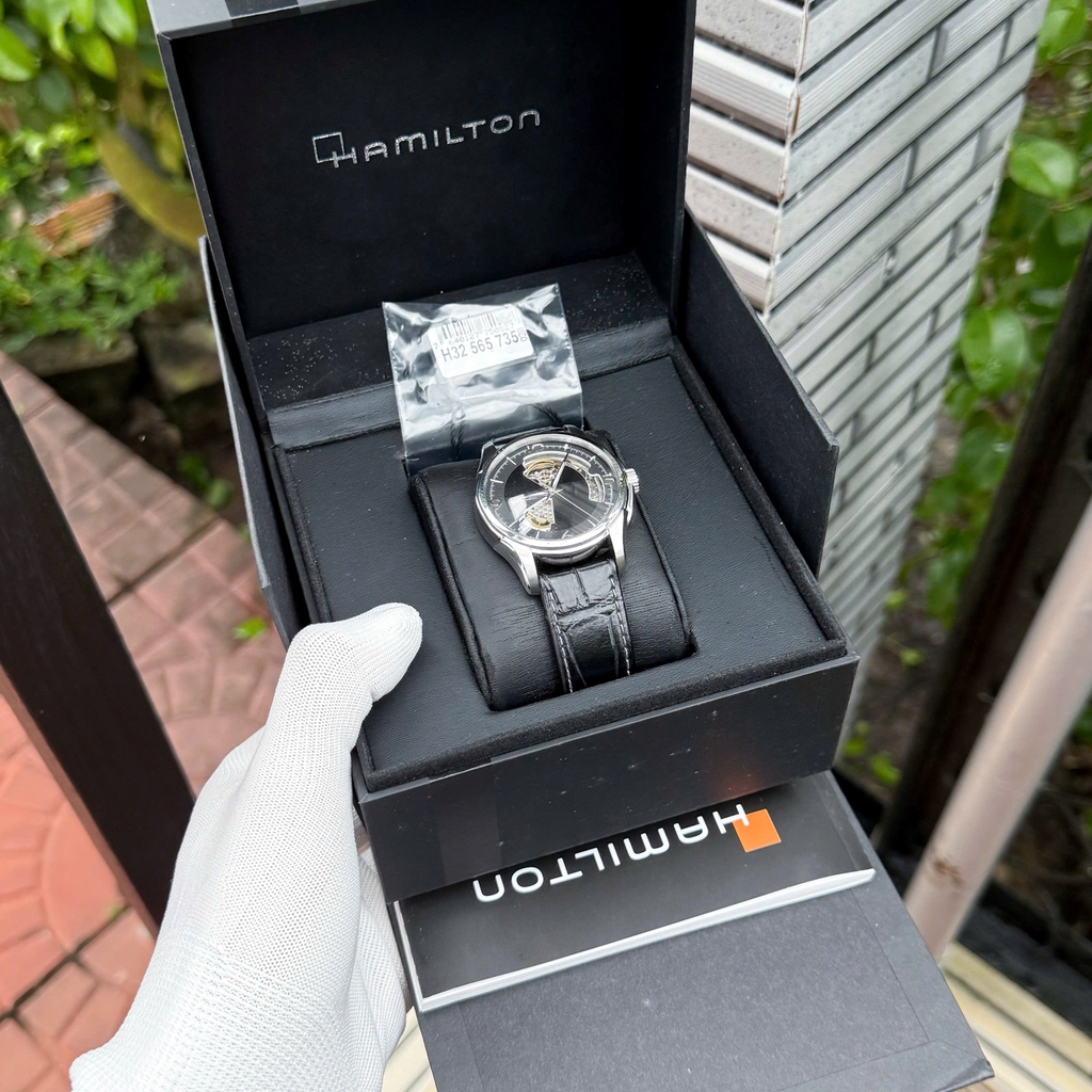 Hamilton H32565735 sở hữu mặt số đen huyền bí, kim và cọc số bạc sáng tạo điểm nhấn sang trọng. Kính sapphire cong chống trầy, vỏ và núm thép không gỉ bạc bóng bẩy, dây da đen trẻ trung, năng động. Khả năng chống nước 50 mét, phù hợp phong cách công sở, lịch lãm hoặc những dịp trang trọng, tôn lên sự tự tin và tinh tế của người đàn ông hiện đại.