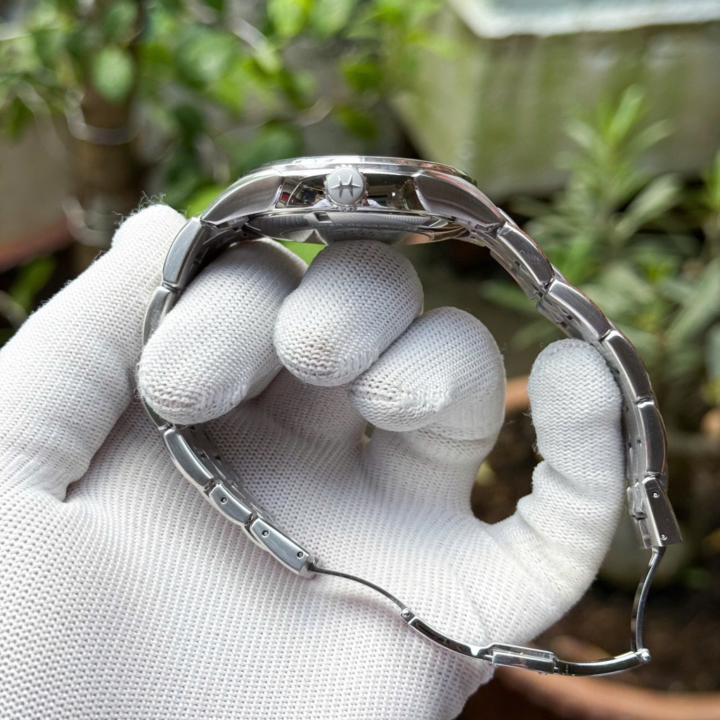 Hamilton H32705141 nổi bật với mặt số xanh navy lộ cơ tinh tế, kim và cọc số mạ bạc sang trọng. Vỏ và dây thép không gỉ sáng bóng, kính sapphire chống trầy xước giúp bảo vệ đồng hồ hoàn hảo. Khả năng chống nước 50 mét phù hợp đeo hằng ngày. Thiết kế hài hòa giữa cổ điển và hiện đại, lý tưởng cho trang phục công sở, dự tiệc hoặc phong cách lịch lãm tinh tế.