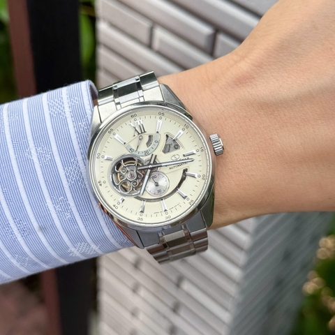 Orient Star WZ0281DK sở hữu mặt số màu ngà thanh lịch, kết hợp kim và cọc số tông bạc sang trọng, nổi bật với chữ số La Mã XII ở vị trí 12 giờ. Vỏ và dây thép không gỉ bạc kết hợp kính sapphire chống trầy tạo nên vẻ ngoài bền bỉ và sáng bóng. Thiết kế trang nhã phù hợp phong cách công sở lịch lãm, đồng thời cũng hài hòa khi phối cùng trang phục dạo phố hoặc sự kiện trang trọng.