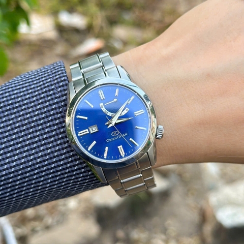 Orient Star WZ0091EL có mặt số xanh navy ánh kim sang trọng, kim và cọc số bạc phủ dạ quang, cửa sổ ngày ở vị trí 9 giờ và kim báo năng lượng tiện dụng. Kính sapphire chống trầy, vỏ và dây thép không gỉ sáng bóng, khả năng chống nước 50m. Thiết kế hiện đại, lịch lãm, phù hợp phong cách công sở và trang trọng.