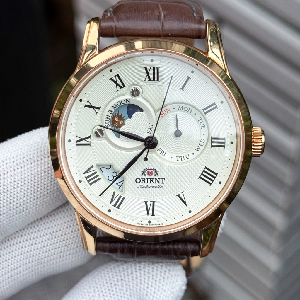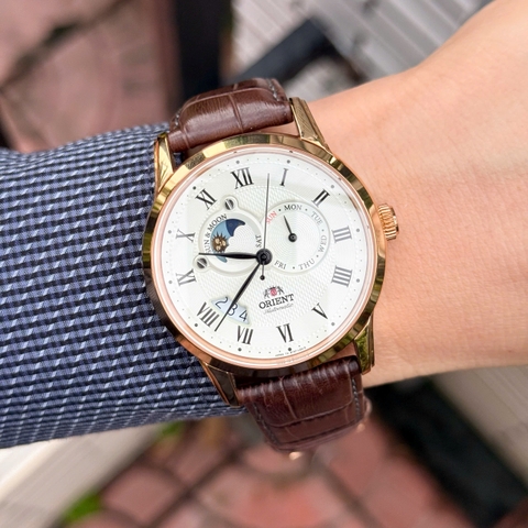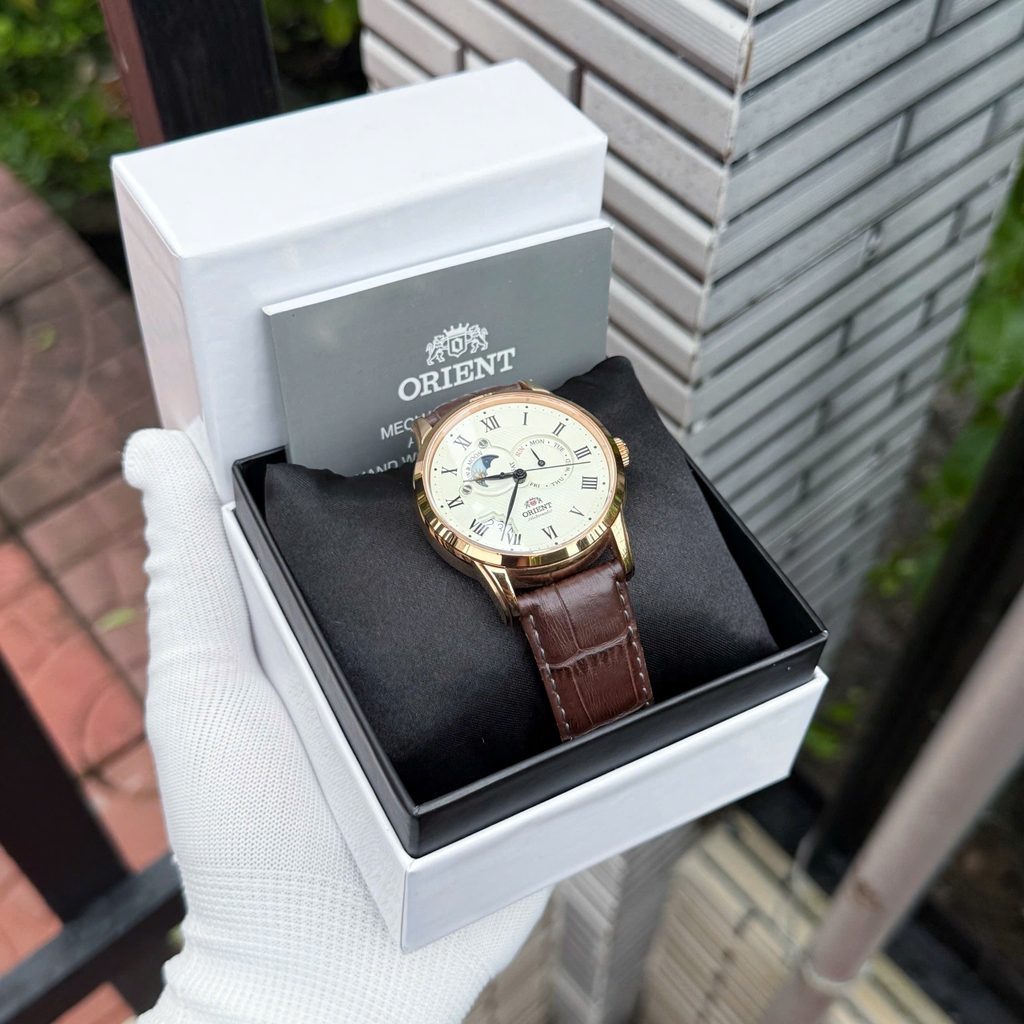 Orient Sun & Moon là dòng đồng hồ mang dấu ấn đặc trưng nhờ cửa sổ hiển thị ngày đêm độc đáo, tạo chiều sâu và sự khác biệt trên mặt số. Bên cạnh tính năng Sun & Moon, đồng hồ còn được trang bị lịch ngày, lịch thứ và nhiều chi tiết trang trí cổ điển. Dòng sản phẩm này được đánh giá cao bởi phong cách thanh lịch, sang trọng, thích hợp với những ai yêu đồng hồ mang hơi hướng nghệ thuật và tinh tế.