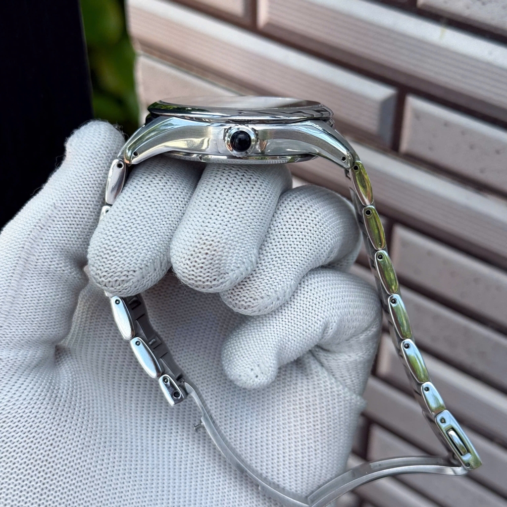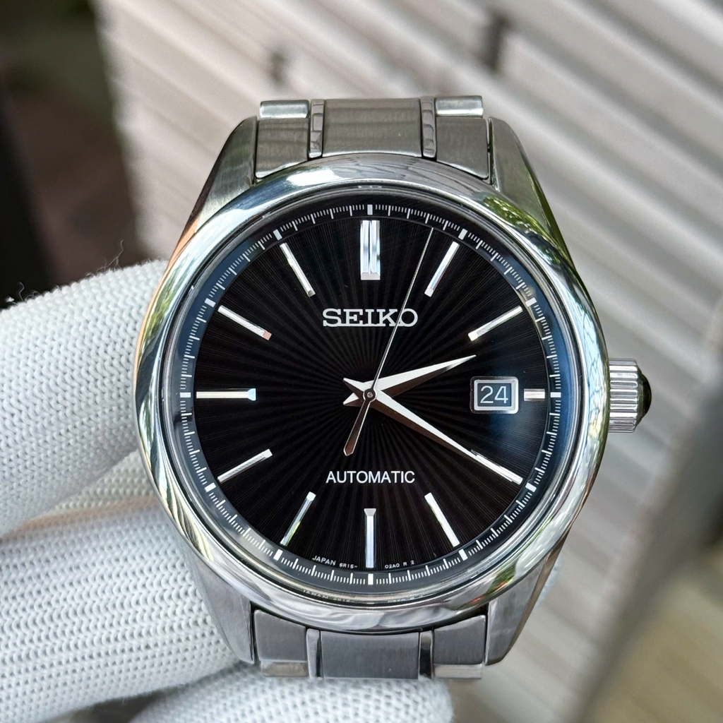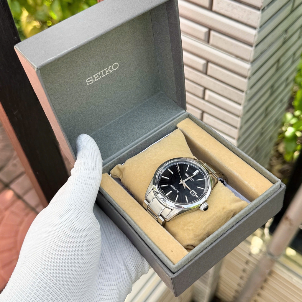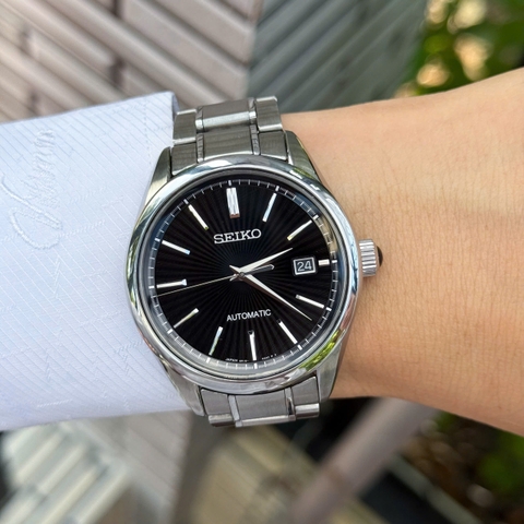 Seiko Brightz SDGM003 có mặt số đen ánh sunburst sâu hút, kim và cọc số mạ bạc nổi bật, phủ dạ quang tinh tế. Kính sapphire chống trầy, vỏ và núm thép không gỉ đánh bóng sang trọng. Khả năng chống nước 100 mét giúp sử dụng linh hoạt hằng ngày. Thiết kế mạnh mẽ nhưng thanh lịch, lý tưởng cho phong cách doanh nhân và trang phục công sở cao cấp.