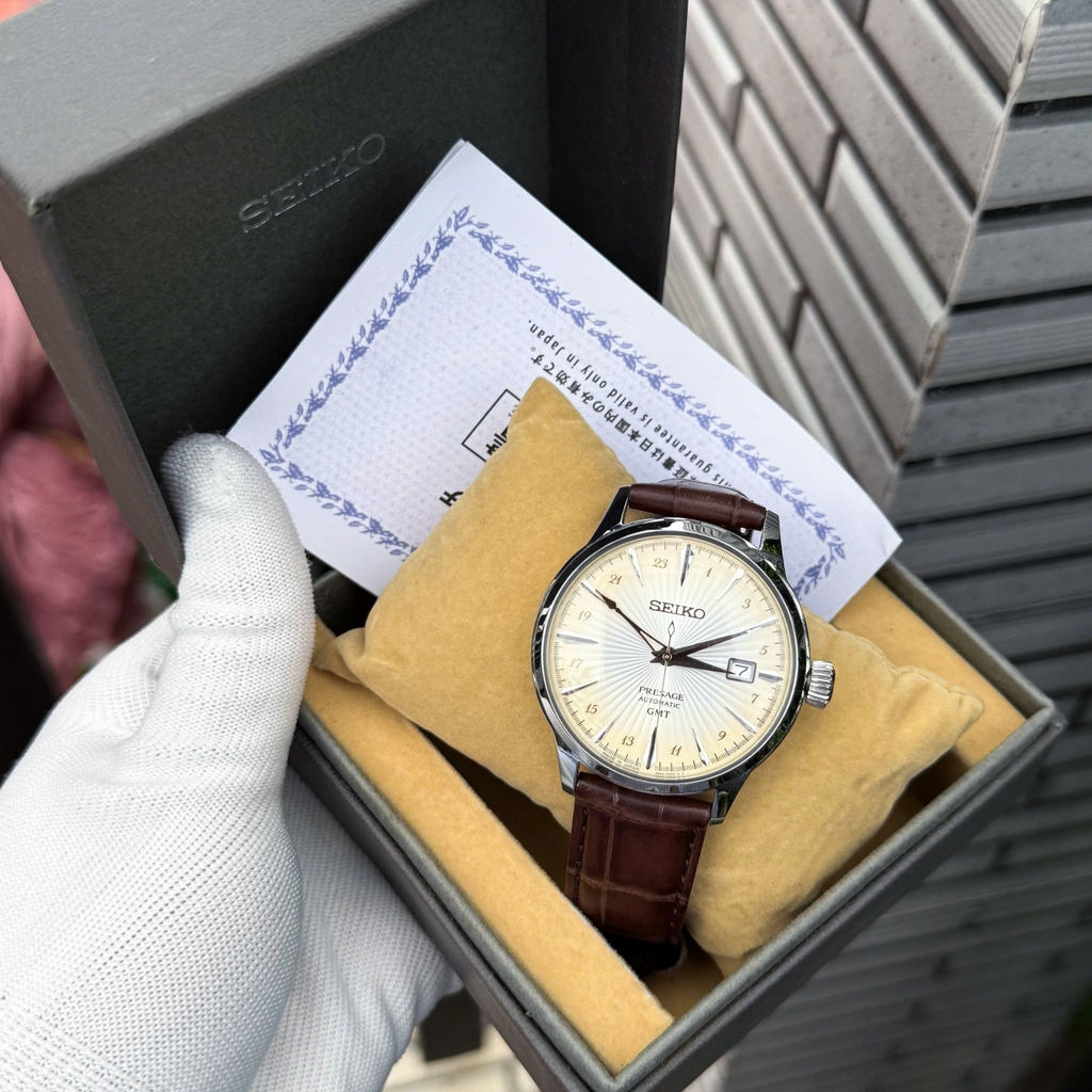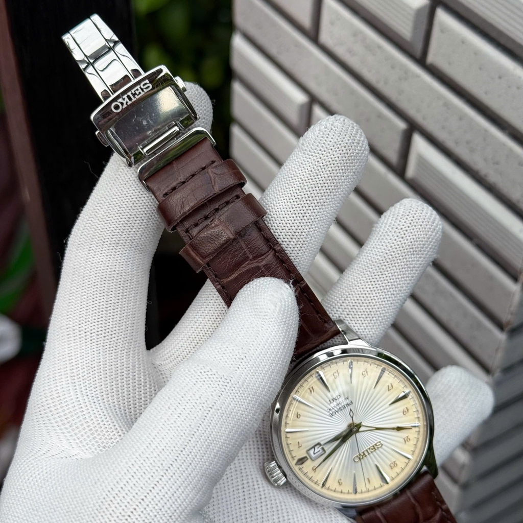 Hướng dẫn mua hàngSeiko Presage Cocktail Time là dòng đồng hồ tôn vinh nghệ thuật pha chế cocktail Nhật Bản, kết hợp giữa kỹ thuật chế tác tinh xảo và cảm hứng thẩm mỹ hiện đại. Thiết kế nổi bật với mặt số sunburst bắt sáng rực rỡ, thể hiện sự sang trọng và tinh tế. Mỗi mẫu Cocktail Time đều mang phong cách thanh lịch, phù hợp cho người yêu thích vẻ đẹp cổ điển pha hiện đại.