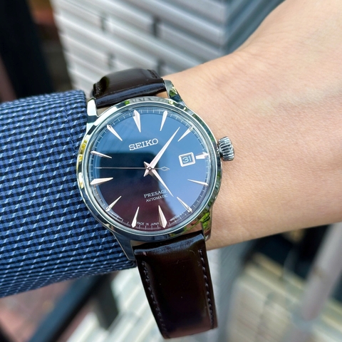 Seiko Presage Cocktail là dòng đồng hồ mang cảm hứng từ vẻ đẹp tinh tế của nghệ thuật pha chế cocktail Nhật Bản. Các mẫu thuộc bộ sưu tập này thường nổi bật với mặt số được hoàn thiện cầu kỳ, hiệu ứng ánh sáng cuốn hút, tạo cảm giác sang trọng và thanh lịch. Sự kết hợp hài hòa giữa thiết kế tinh xảo cùng bộ máy cơ bền bỉ khiến Presage Cocktail trở thành lựa chọn yêu thích của người đam mê đồng hồ.