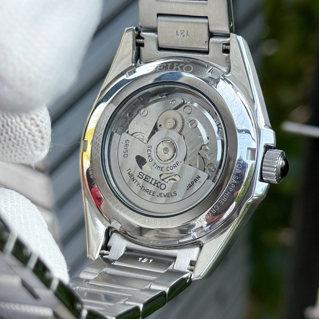 Đồng hồ sử dụng bộ máy cơ tự động 6R15 với 23 chân kính, tần số dao động 21.600 vph, khả năng tích cót khoảng 50 giờ. Máy hỗ trợ lên cót tay cùng cơ chế dừng kim giây khi chỉnh giờ để tăng độ chính xác. Nhờ cấu trúc ổn định và độ tin cậy cao, bộ máy mang lại trải nghiệm vận hành mượt mà và bền bỉ trong sử dụng hàng ngày.