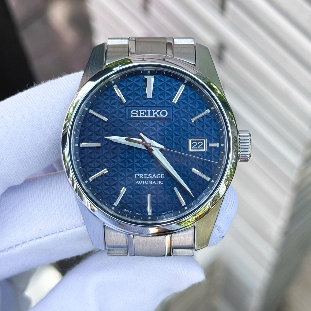 Seiko Presage Sharp Edged là dòng đồng hồ đậm chất nghệ thuật Nhật Bản, kết hợp họa tiết mặt số Asanoha sắc nét với thiết kế góc cạnh tinh tế. Dòng này hướng tới người dùng yêu thích sự thanh lịch nhưng vẫn hiện đại – vừa dùng trong môi trường công sở, vừa dễ phối đồ thường ngày, mang đậm dấu ấn cơ khí và tính thẩm mỹ tinh tế.