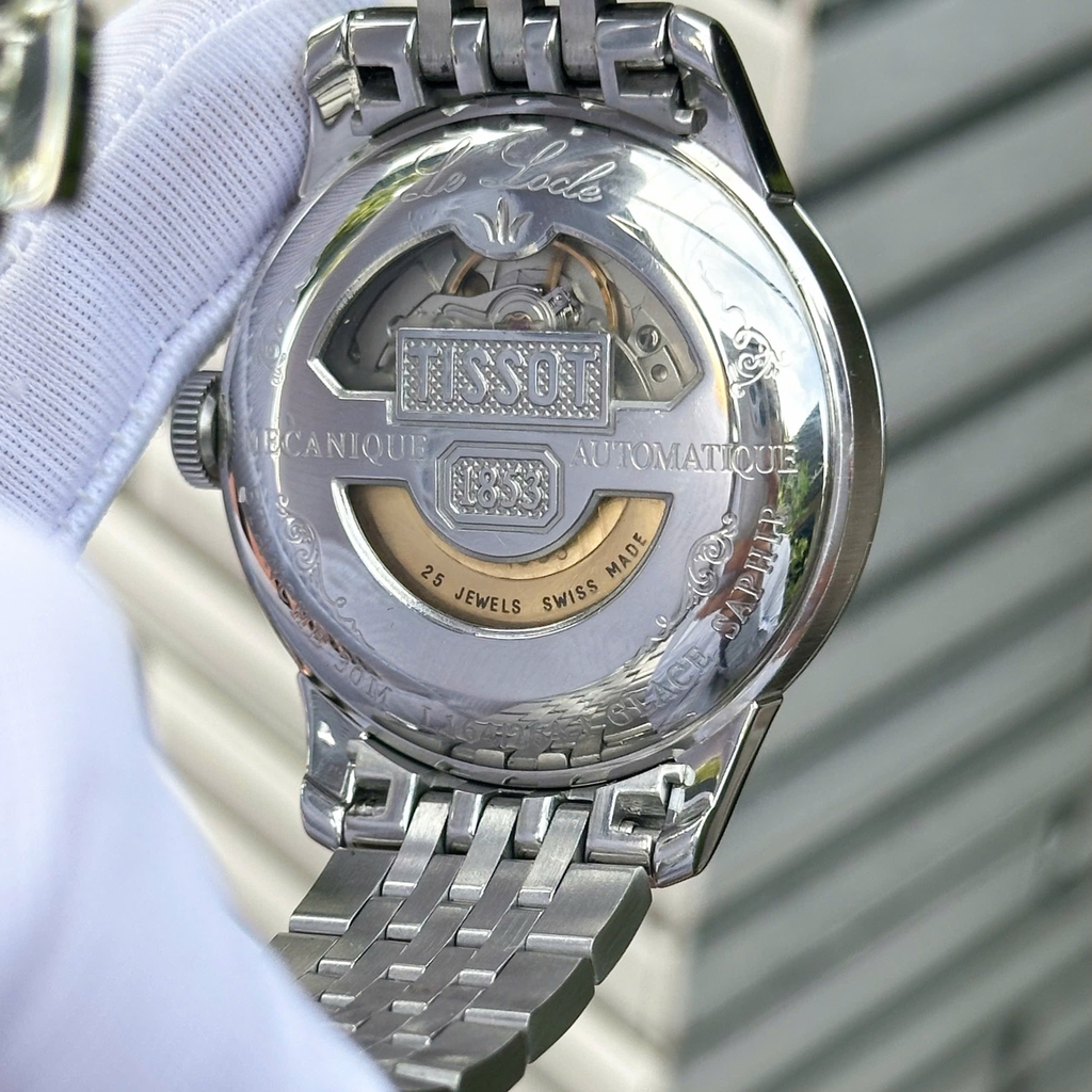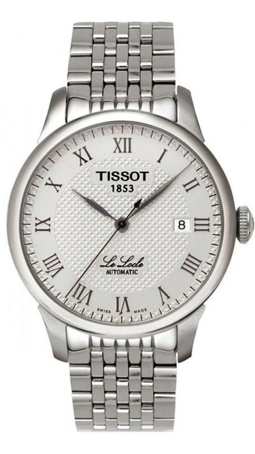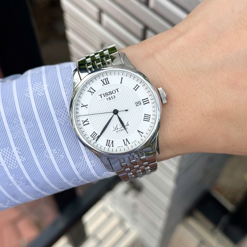 Tissot Le Locle T41.1.483.33 sở hữu mặt số trắng bạc hoa văn guilloché thanh lịch, kim và cọc số La Mã đen nổi bật, kính sapphire chống trầy, vỏ và núm thép không gỉ bạc sáng, dây thép cùng tông tạo tổng thể hài hòa. Khả năng chống nước 30m. Phong cách cổ điển, tinh tế, phù hợp với trang phục công sở, sự kiện và những dịp trang trọng.