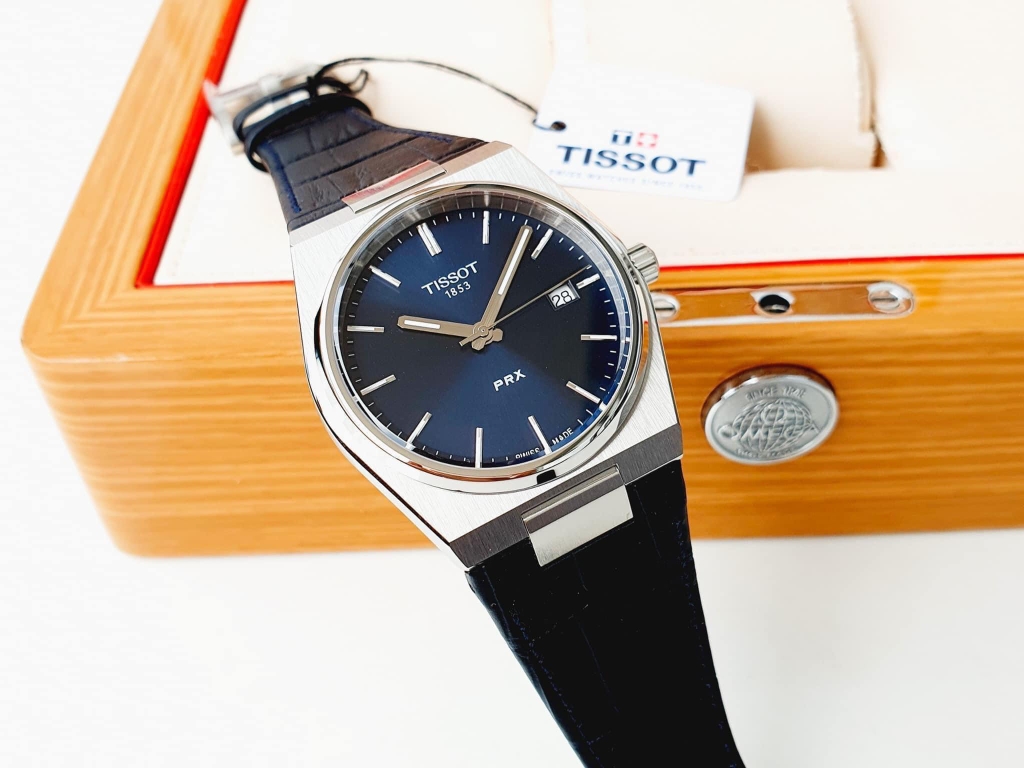 Tissot PRX Blue T137.410.16.041.00 sở hữu mặt số xanh dương ánh sunburst, kim và cọc số phủ dạ quang, kính sapphire chống trầy, vỏ thép không gỉ bạc sáng cùng núm đồng bộ logo T. Dây da xanh đậm thanh lịch, độ chống nước 100m giúp an tâm khi đi mưa hay rửa tay. Phù hợp với phong cách smart casual và business.