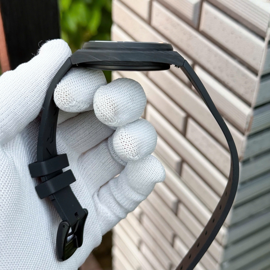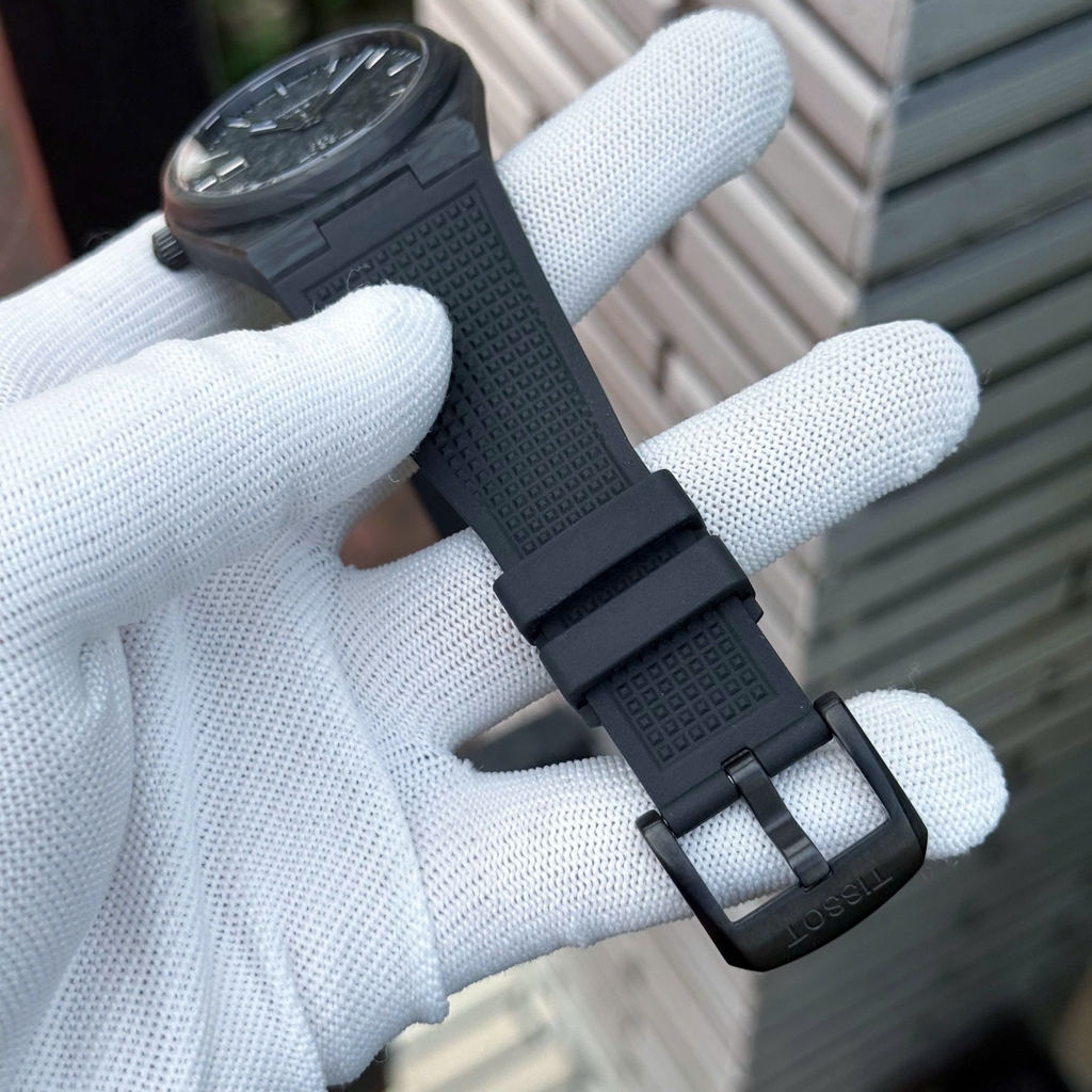 Tissot PRX FORGED CARBON T137.907.97.201.00 sở hữu mặt số carbon đen xen vân xám, kim và cọc số phủ dạ quang trắng, kính sapphire chống trầy, vỏ carbon rèn phối thép đen cùng núm đồng màu, dây cao su đen thể thao. Khả năng chống nước 100m giúp linh hoạt sử dụng. Thiết kế táo bạo và hiện đại, phù hợp phong cách năng động, cá tính và sang trọng thường ngày.